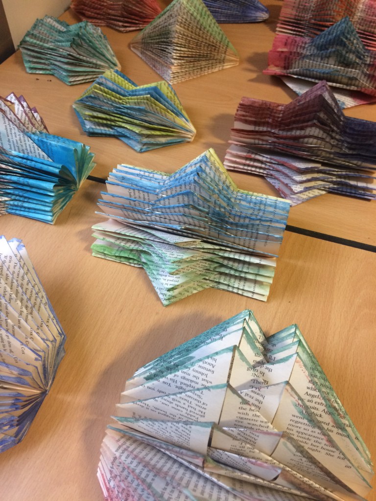 Kate has been working with local community groups, libraries, councils and different organisations for the majority of her career. Delivering a variety of book arts workshops from folded book sculptures to book making too. These workshops can vary from small groups of 10-15 to large scale workshops up to 100 people. Do get in touch to discuss any workshop ideas you may a have.